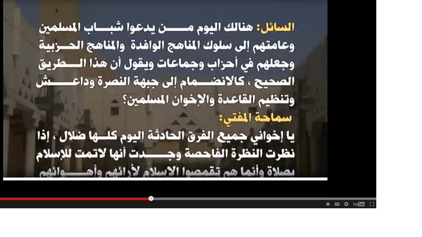 يا إخواني جميع الفرق الحادثة اليوم كلها ضلال ، اذا نظرت النظرة الفاحصة وجدت انها لاتمت للاسلام بصلة و أنما هم تقمصوا الاسلام لارائهم أهوائهم و خداع الناس و أنهم على ضلالة، استباتحوا الدماء ،انتهكوا الاعراض،نهبوا الاموال،أفسدوا في الامر،هذه كلها مناهج باطلة وائها من ورائها و لا خير فيها و لا نثق فيها و لا في اهلها و من يدعو شبابنا للانخراط مع هذه الفرق الضالة فقد اخطأ و ضل سواء السبيل