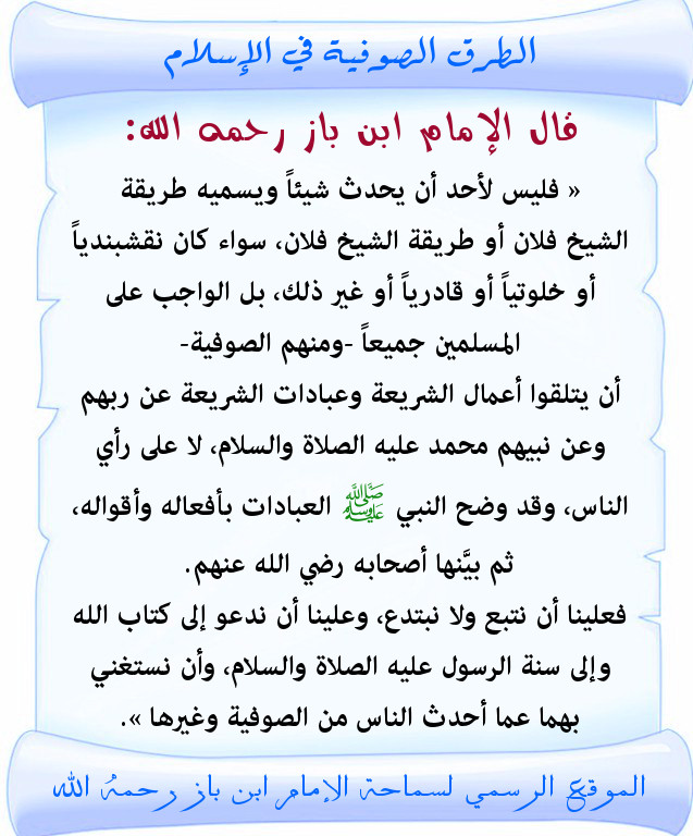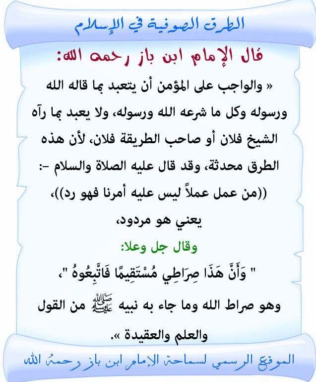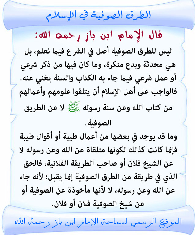 فالواجب على أهل الإسلام أن يتلقوا علومهم وأعمالهم من كتاب الله وعن سنة رسوله صلى الله عليه وسلم لا عن الطريق الصوفية.