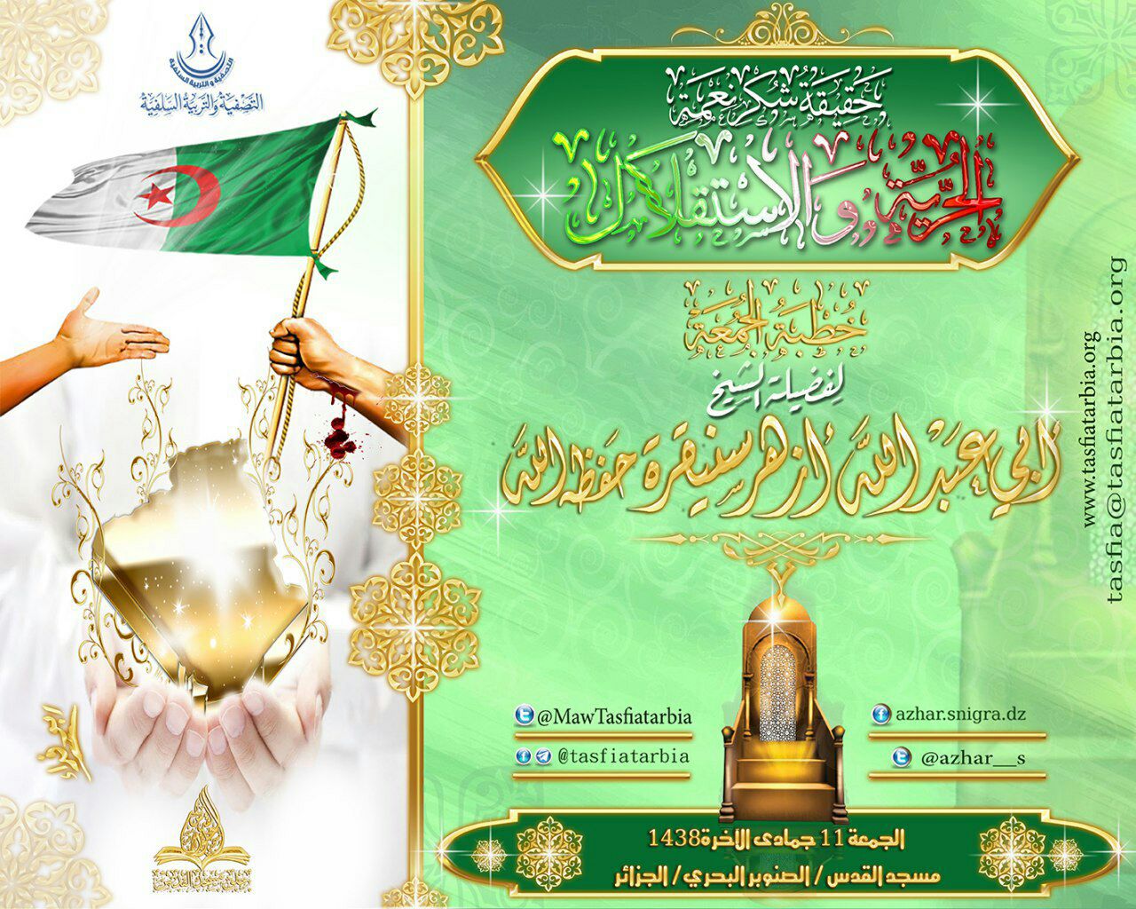 [خطبة جمعة] حقيقة شكر نعمة الحرية والإستقلال، لفضيلة الشيخ أبي عبد الله أزهر سنيقرة حفظه الله ورعاه/ 11جمادى الآخر 1438 هجرية