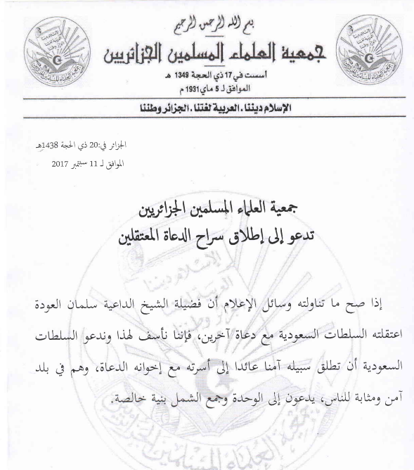 وهذا مقطع قصير؛ وهو واحد من عشرات المكالمات التي كانت ترد إلى سلمان العودة من الجزائريين آنذاك، والتي كان يفتيهم فيها بالالتحاق بالجماعات المسلّحة في الجبال.