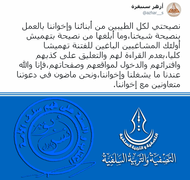تغريدة فضيلة الشيخ: أزهر سنيقرة ـ حفظه الله ـ