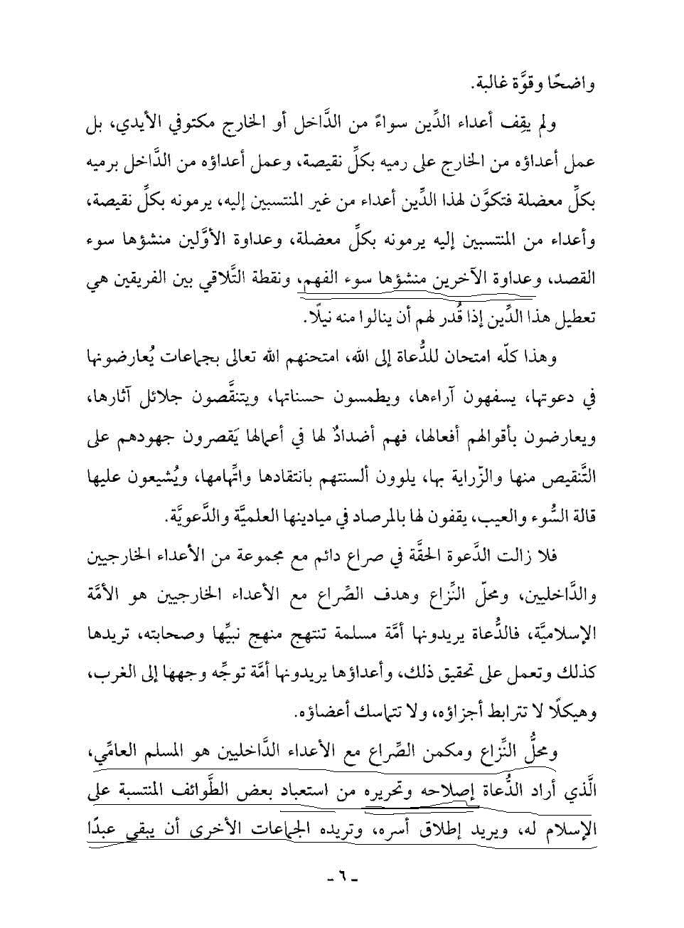 بدليل أنه لما تكلم عن عداوة الكفار للمسلمين ( نفس الصفحة ) قال: « وعداوة الأولين منشؤها سوء القصد ».