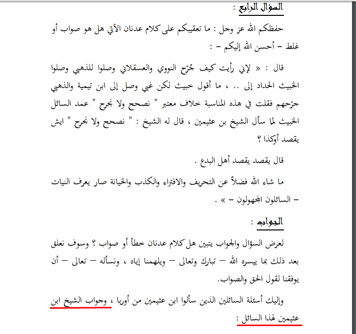 جواب الشيخ ابن عثيمين الذي أورده الشيخ ربيع :