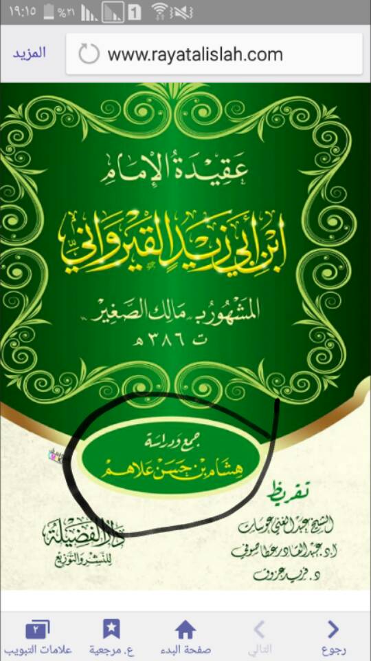 هـ- كتاب " عقيدة الإمام ابن أبي زيد القيرواني "، جمع و دراسة: هشام بن حسن علاهم، بتقديم: عبد الغني عويسات، و فريد عزوق، و عبد القادر عطا .